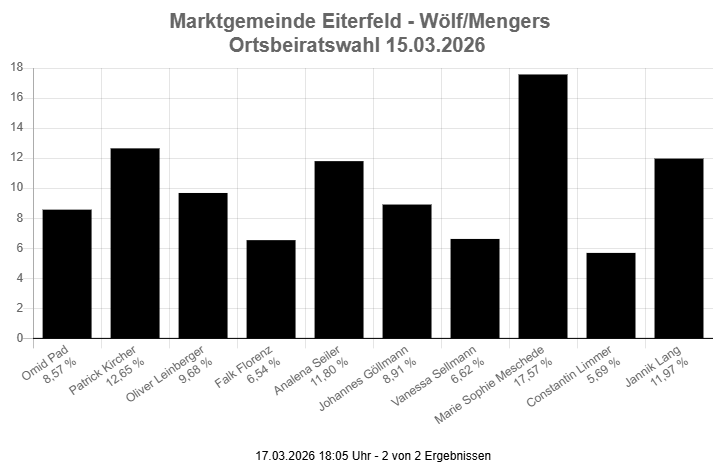 Hiermit lade ich alle Ortsbeiratsmitglieder sowie alle Bürgerinnen und Bürger zur konstituierenden Sitzung (öffentlich) des Ortsbeirats Wölf/ Mengers am Montag, 20.04.2026 um 19:30 Uhr in das DGH Wölf ein.